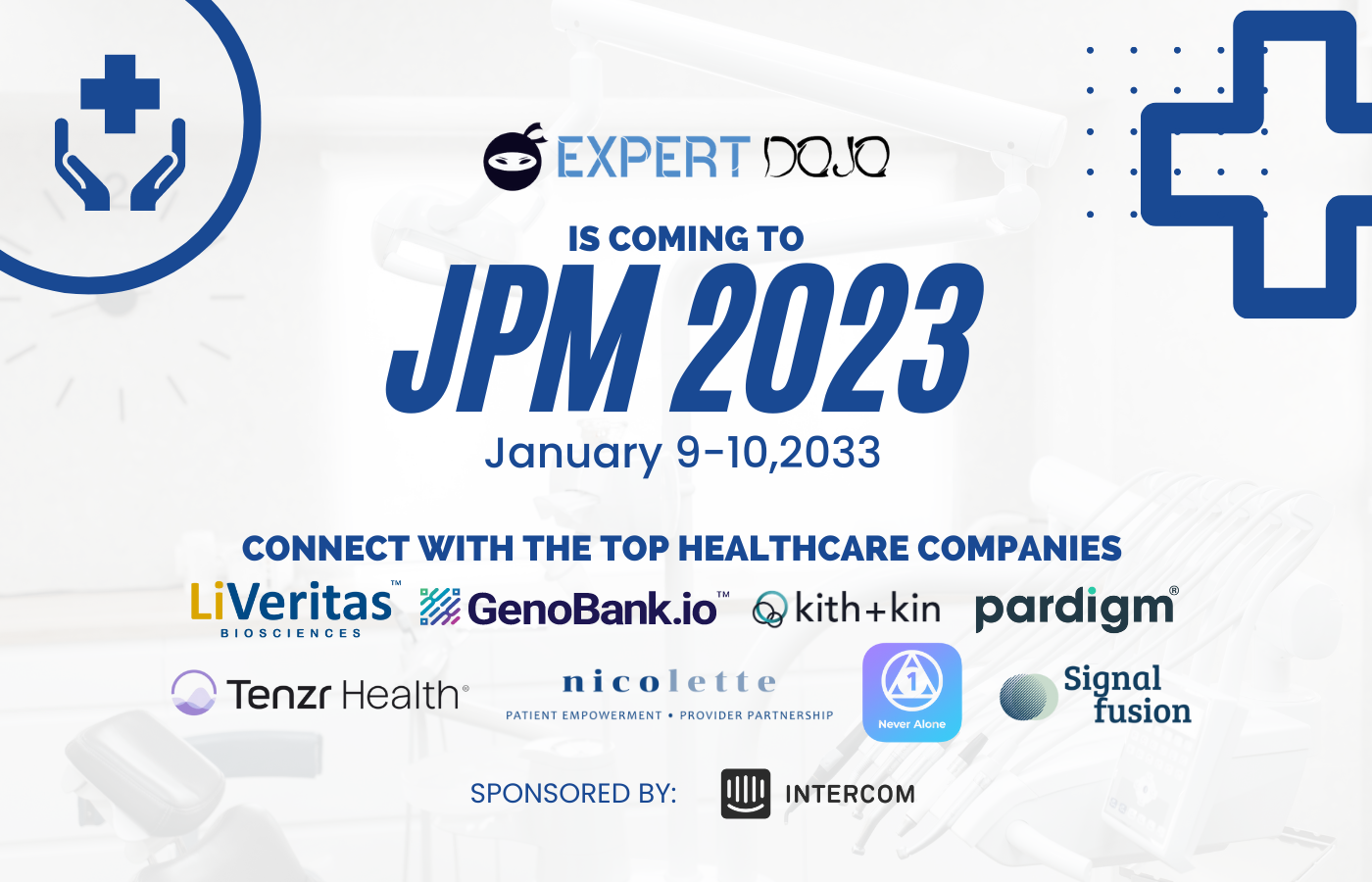 Expert Dojo Healthcare is coming to JPM 2023! We are thrilled to partner with Intercom, to host these meetings at their office in SF (about 1/2 mile from the Westin). Intercom enables businesses to connect with their customers at exactly the right moment using powerful messaging and automation.
